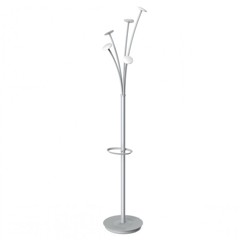 Appendiabiti in acciaio e abs con base appesantita. Dotato di 5 supporti abito e portaombrelli con raccogli acqua. Dimensioni: altezza 187cm base da 5kg con diametro 35,5cm