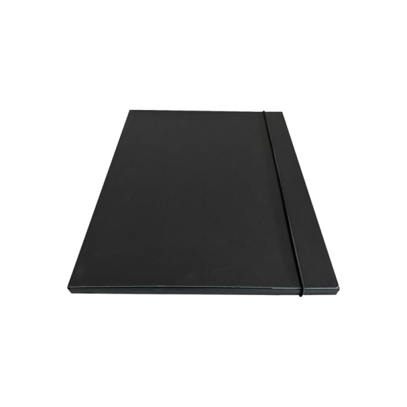 Cartellina Starline con elastico tondo in robusto presspan lucido colorato in pasta da 1.1 mm di spessore. Cartellina fustellata con due alette interne. Chiusura mediante elastico tondo colorato in tinta. F.to chiuso h350x b260mm/ F.to utile h340x250mm. Dorso 1 cm. Cartone certificato FSC. 6 colori disponibili: blu, giallo, rosso, verde, arancio e grigio.