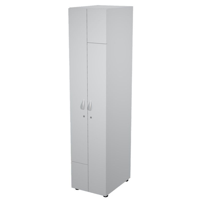 Mobile guardaroba/spogliatoio a 2 ante ognuna con serratura. In materiale melaminico classe E1 con finitura antigraffio e antiriflesso. Ogni anta chiude un vano piccolo (dimensioni utili: 36,4x48xH28cm) e un vano grande (dimensioni utili: 17,3x 48xH118,8cm) completo di asta appendiabiti. Dotato di fori per una perfetta aerazione posteriore e piedini regolabili in altezza. Le cerniere laterali sono provviste di un meccanismo scorrevole che permette l’apertura contemporanea del vano superiore con l'anta sinistra e del vano inferiore con l'anta destra.