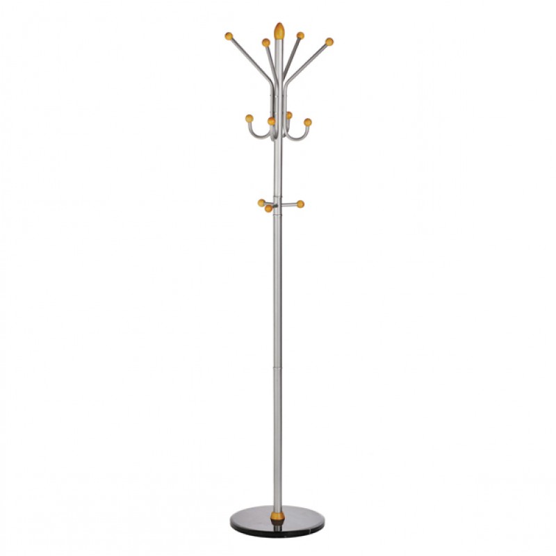 | In metallo satinato colore argento con base in marmo- 4 pomelli superiori, 4 pomelli bassi e 3 pomelli per accessori e portaombrelli. Altezza 185cm, base 40cm. |