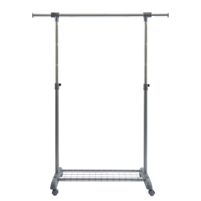 Appendiabiti multiuso facile da trasportare e comodo da usare. Con ampia base di appoggio e tubi estensibili per aumentarne la capacità. Può essere usato come appendiabiti dopo la stiratura, come stendibiancheria per capi ingombranti o in alternativa al classico armadio. Si assembla facilmente senza l'uso di utensili. Dotato di ruote e griglia porta scatole. 1 barra. Misure: base cm 88,3 estensibile fino a cm 138, altezza cm 94 estensibile fino a cm 166.