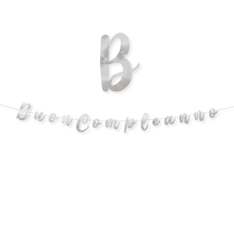 | Festone Buon compleanno in cartoncino. Colore argento. |