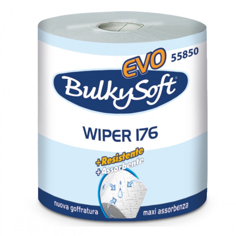 Bobina asciugatutto industriale in mix di cellulosa a 2 veli 18g. Bianca microgoffrata 800 strappi. Dimensioni bobina: Ø 26cm - H26cm - Lunghezza totale 176mt. Diametro anima: 7,1cm a sfare. Idoneo al contatto con gli alimenti.