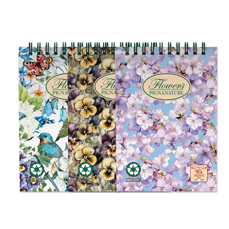 Blocco Nature Flowers - spiralato sul lato corto - A5 - 50 fogli - 80 gr - 5mm - Pigna