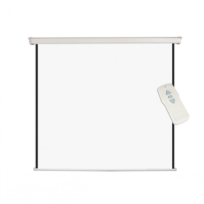 Schermo per proiezione a parete motorizzato con telecomando (senza fili). Formato quadrato. Motore silenzioso integrato nell'alloggiamento dello schermo. Interruttore Up/Down Off con telecomando incluso. Superficie di proiezione bianco opaco. Offre una riflettività superiore e una superficie piatta. Ideali per tutti i proiettori frontali. Dimensioni: 180x180cm.