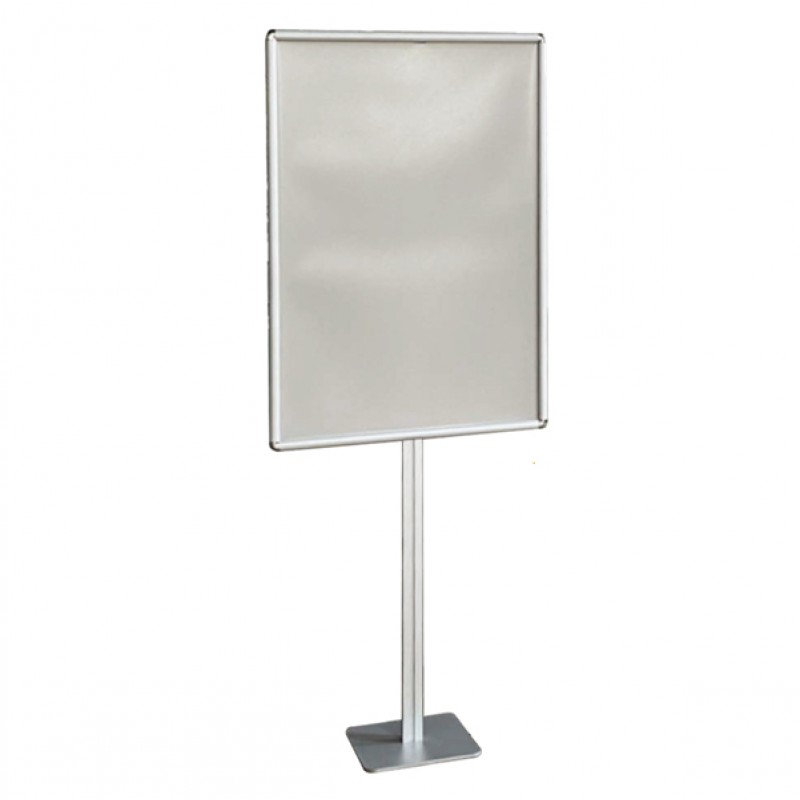 Il porta poster da terra 70×100 ST è la soluzione ideale per chi deve cambiare frequentemente la comunicazione. Struttura autoportante mono o bifacciale InUNO, con montante centrale in alluminio anodizzato silver; cornice a scatto “click-clak” con angoli arrotondati per grafica in carta. Cornice disponibile formato 70x100. Completo di pellicola protettiva in PVC. Base in metallo vernicata. Dimensioni: H181cmXL73,1cm. Base quadrata 40x40cm.