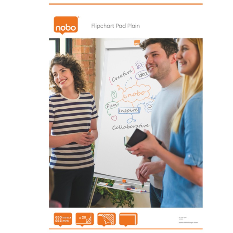 | Questi blocchi ricambio possono essere utilizzati per visualizzare informazioni o prepareare riunioni, come strumento di brainstorming o per annotare idee. Per ogni attività è disponibile un blocco adatto ad ogni esigenza. Blocco da 20 pagine bianche, carta da 70gr/m2. Dimensioni Foglio: 65x95,5 cm. |