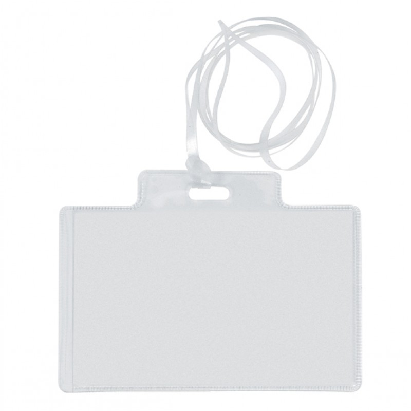 Porta nomi in PVC trasparente, alto spessore, completi di cordoncini in plastica e cartoncini. I cordoncini sono a norme di sicurezza anti soffocamento. Adatti a congressi, riunioni, visite guidate. Inserimento del cartoncino dal lato corto. Formato 95x60mm.
