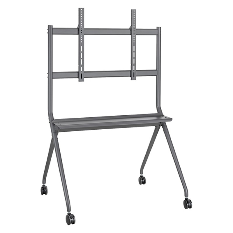 Supporto TV / Monitor Interattivo universale su ruote: il carrello si adatta alla maggior parte degli schermi LED, LCD, OLED piatti e curvi da 50-86" con un peso fi no a 120 kg. Il supporto è dotato di un solido ripiano multimediale. Ideale per ospitare lettori DVD, attrezzature da gioco o altri dispositivi multimediali, contribuisce a mantenere tutto a portata di mano e organizzato. Fornito con tutti gli accessori necessari e una guida di installazione facile e intuitiva. Per garantire un ambiente pulito e ordinato, il carrello dispone di un sistema integrato di gestione dei cavi, che nasconde fili e cavi in modo discreto. Compatibile con le migliori marche di TV / Monitor interattivi sul mercato come Samsung, Panasonic, Sharp, Sony, Toshiba, Thomson, LG, Hisense, TCL