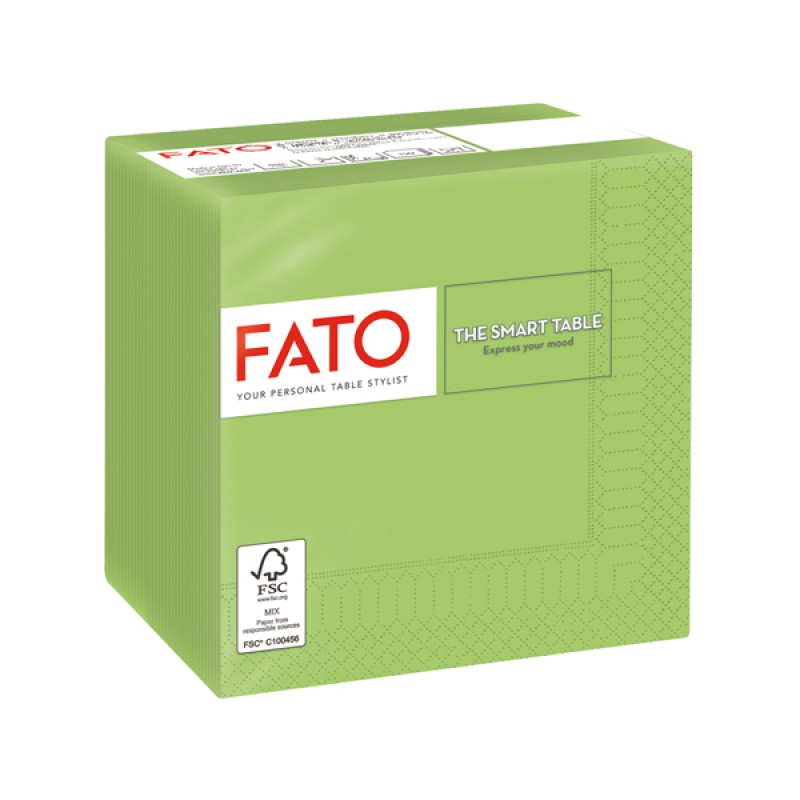 | Confezione da 100 tovaglioli di carta 24x24cm. 2 Veli. Colore: verde mela. Idoneo al contatto alimentare. |