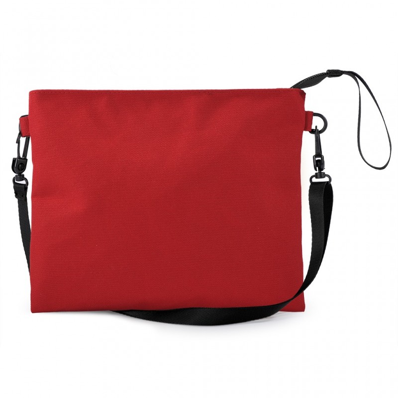 dal design lineare e giovanile, con tracolla regolabile e staccabile a mezzo moschettoni in plastica. Con chiusura a zip R (rosso)