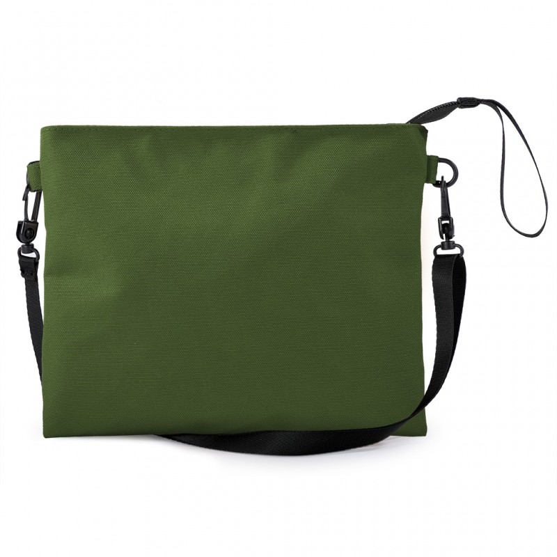 dal design lineare e giovanile, con tracolla regolabile e staccabile a mezzo moschettoni in plastica. Con chiusura a zip VM (verde militare)