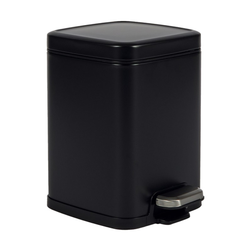 Bidone con pedale e vaschetta da 6L. Chiusura rallentata Soft close. Materiale: acciaio verniciato nero satinato e PPL: Dimensioni: 20x20x29cm.