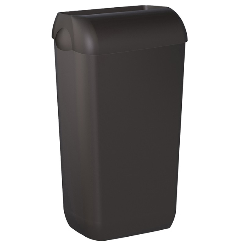 Cestino gettacarte completo di coperchio Hidden (nascondi sacco che rendono discreta la presenza del sacchetto interno). Capacità 23 L.Utilizzabile a pavimento o installabile a parete (in dotazione piastra di fissaggio). Dimensioni: H54,5xP22,5xL33,5cm.