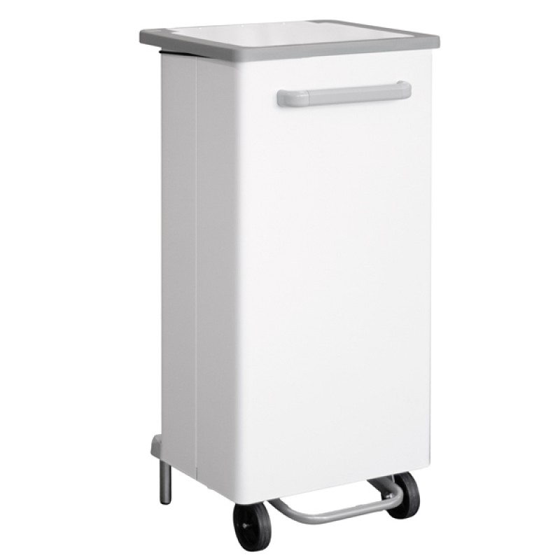 | Contenitore a pedale per raccolta rifiuti totalmente in acciaio con svuotamento frontale. Fornito montato. Dimensione: 47x37xH96cm - 110L. Haccp. |