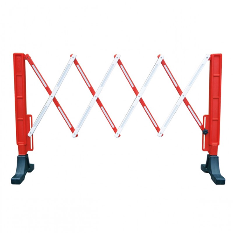 Barriera estensibile fino a 2 metri con basi in gomma da 39cm, altezza 1mt. In polipropilene colore rosso a bande bianche retroriflettenti. Dimensione chiusa: 34x39xH 100cm. Dimensioni aperta: L200 x P39 x H100cm