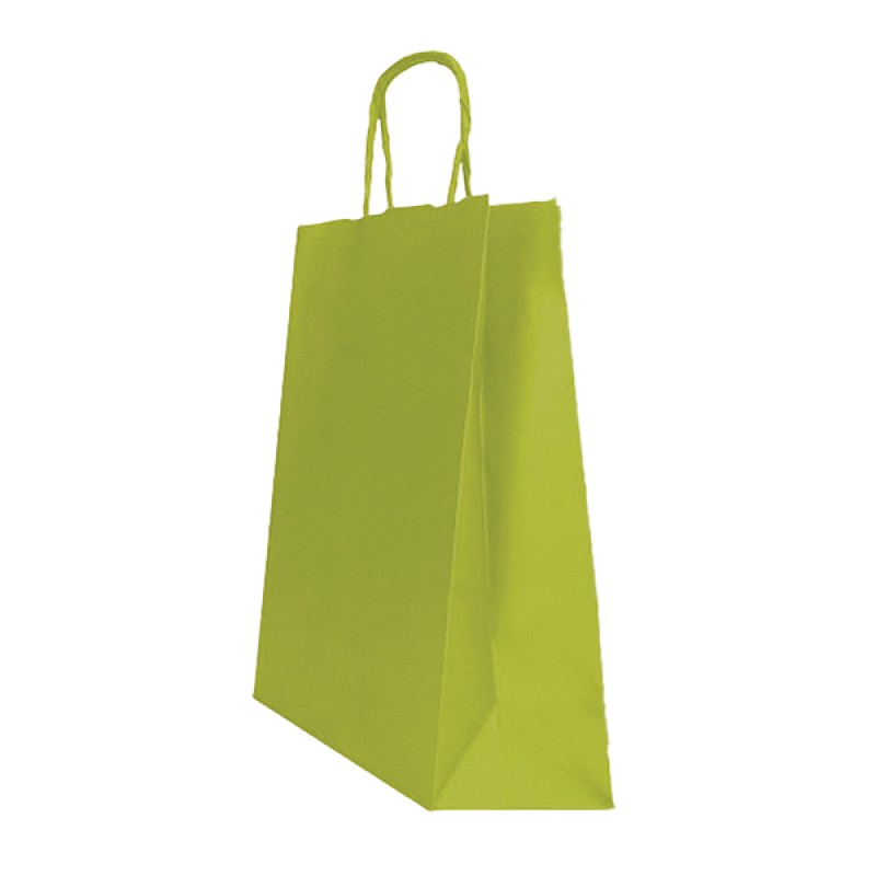 Shopper Twisted - maniglie cordino - 14 x 9 x 21 cm - carta kraft - verde fagiolo - Mainetti Bags - conf. 25 pezzi