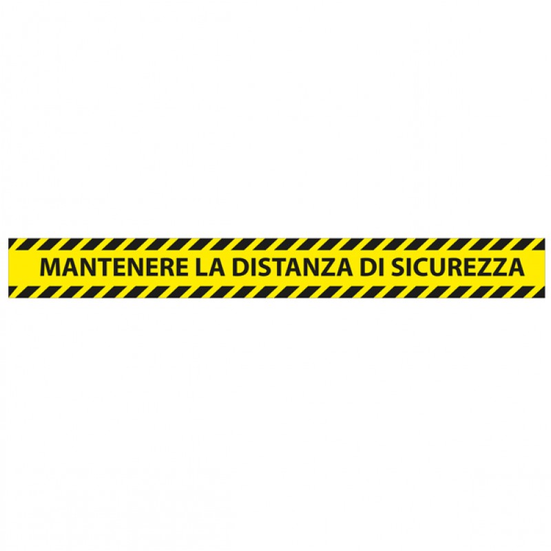 Adesivo per pavimento in PVC 165mg2, patinato, completo di stampa "ANTENERE LA DISTANZA DI SICUREZZA". Dimensioni: L 90cm - H 10cm. Confezione da 5 pezzi.